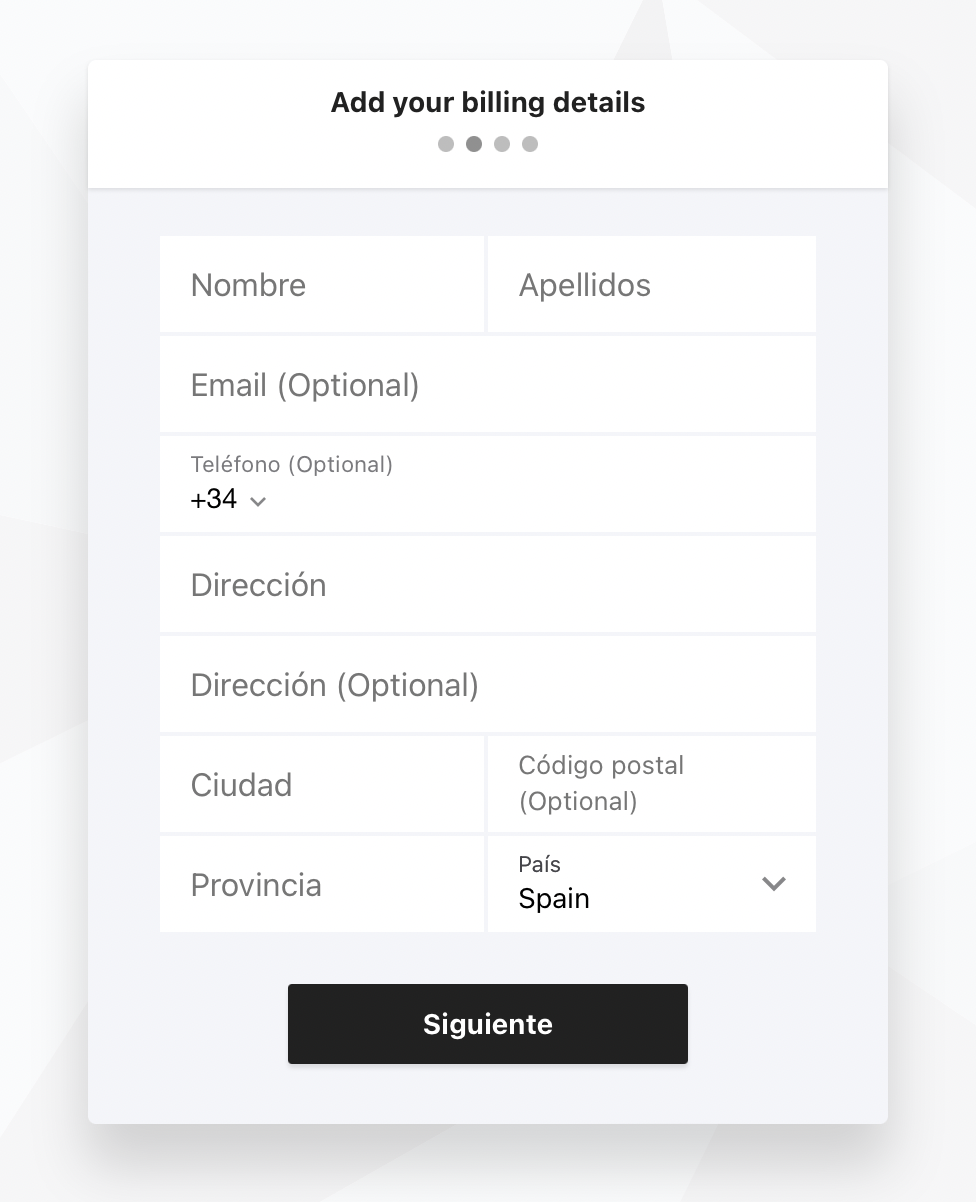 En la siguiente ventana tienes que introducir todos tus datos de facturación: